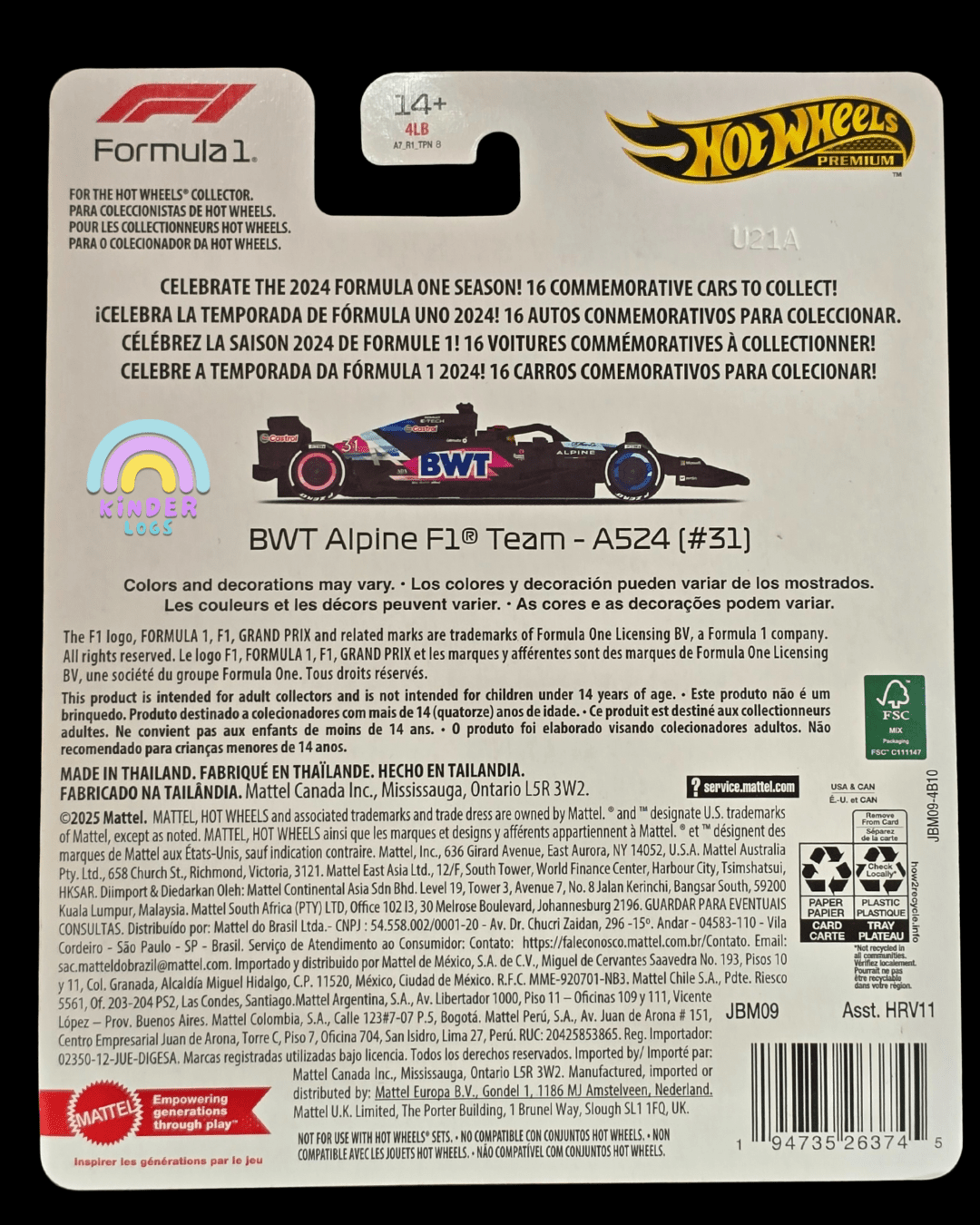 Premium Hot Wheels BWT Alpine F1 Team - A524 (#31) - Imported